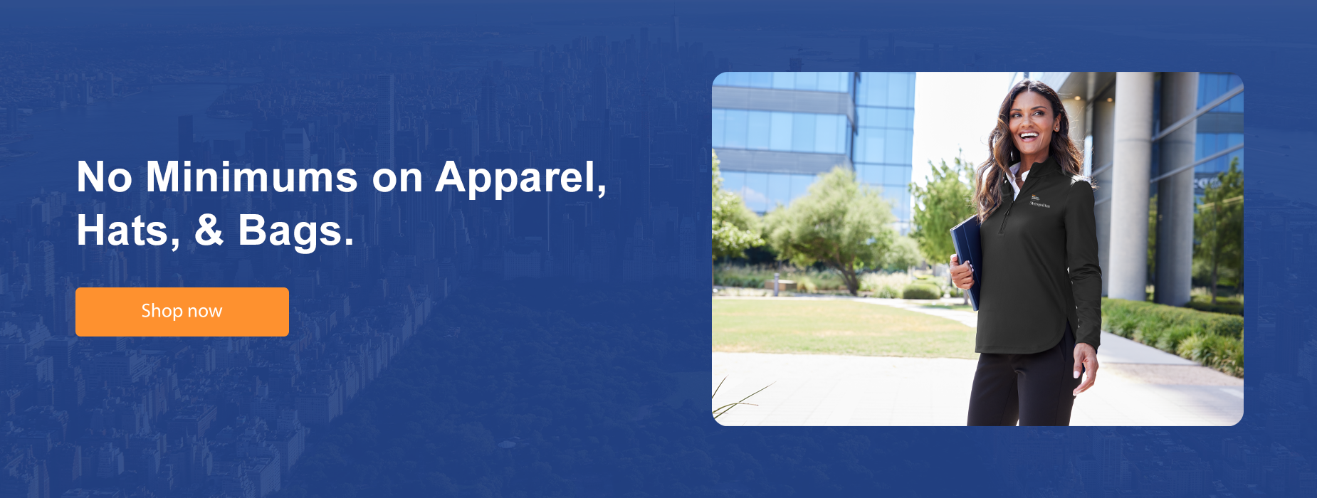 - We have a great selection of apparel, hats, and bags available in single quantities.
