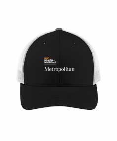 Retro trucker cap with 100% polyester mesh back panel.