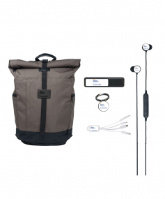 Looking to impress a client or reward and welcome a new employee? It's in the bag with this awesome bundle! Carry, charge, sync and listen with this 5-in-1 bundle option.This 5-piece gift set comes with our best sellers:El Dorado Smart BackpackBudsies wireless EarbudsEnergyBar 2200mAh Power BankArgonot MFI-certified Cord with Micro-USBRingr Smartphone Multi-toolAny or all of the items can be personalized at no additional charge, with no setup charges and only a 1-piece minimum. 25" H x 14" W x 7.5" D